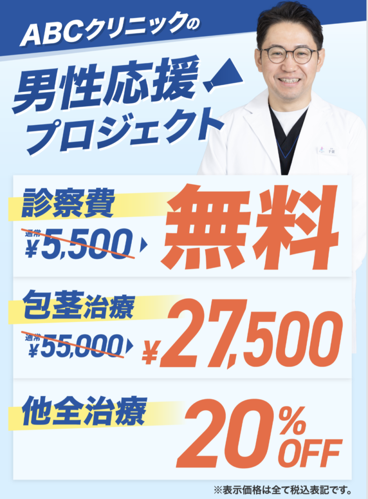ABCクリニック 男性応援プロジェクトについて解説をしてきました。男性応援プロジェクトは、公開情報では割引導線として案内されている一方で、特別価格の表記には差があるため、通常料金を先に確認してから予約条件を照合する見方が大切です。